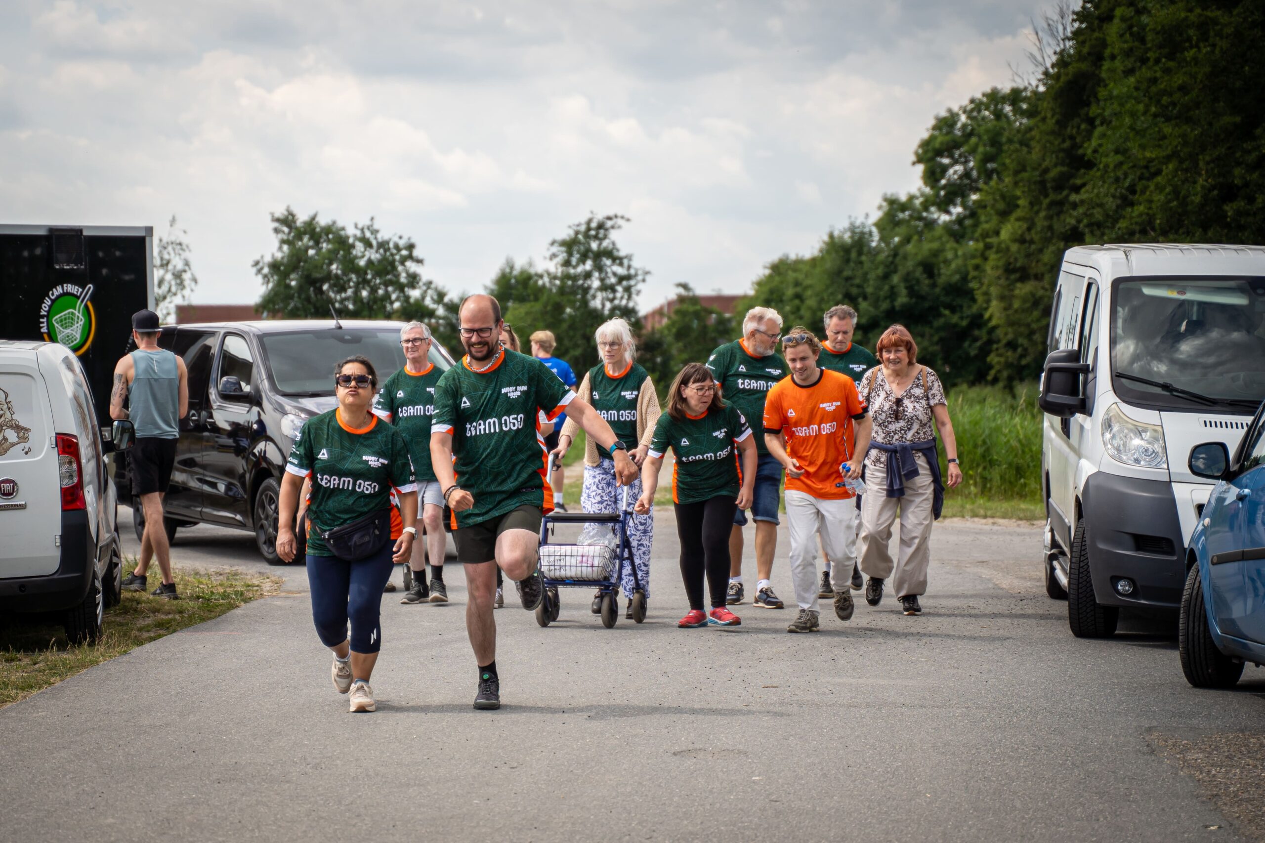 De een met hun eigen buddy, de ander met begeleiders, en het meerendeel met vrijwilligers die dit jaar meehielpen tijdens en na de run! Op ieders eigen tempo werden netten ingeklommen, houten evenwichtsbalken over gebalanceerd, en na een route door het bos de finish overgesprint!